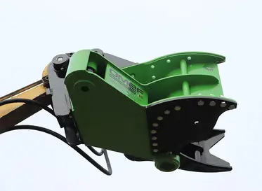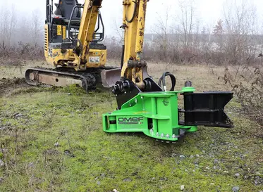 Robust and versatile tree-shear, suitable for small breakdowns. It is an attachment for tractor, cranes, mini loaders, mini diggers, telescopic handlers and excavator from 1.5 up to 3 tons. The high performance hydraulic cylinder operates the grab allowing the trunk cut and its contemporary holding. It reduces the movements of the operating machine and speeds up the consequent loading, chipping and shredding phases.